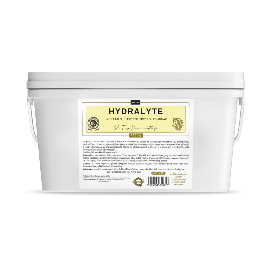 A HYDRALYTE összeállításánál próbáltuk figyelembe venni mindazon izomszövet- és sejtszíntű fiziológiai folyamatokat, amelyek egy intenzív terhelés után, izzadság következtében a ló szervezetében történnek. A HYDRALYTE széles körű hatásainak köszönhetően, segíthetünk a lovak regeneráció folyamataiban, lerövidítve azt, gyorsítva a regeneráló időt.