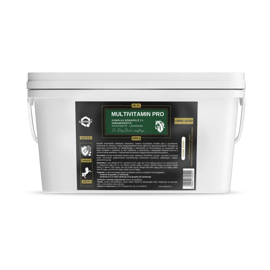 Komplex vitamin-, ásványianyag-, aminosav- és gyógynövény-tartalmú kiegészítő takarmány lovak számára, amely a normál anyagcsere-folyamatok, az immunrendszer élettani működése és a kiegyensúlyozott tápanyagellátás fenntartását támogatja. Különösen hasznos fokozott igénybevétel, fejlődési szakasz vagy szezonális terhelés esetén.