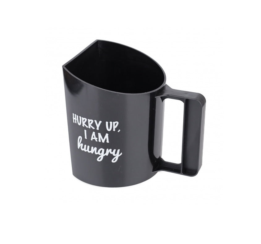 Tartós, könnyen tisztítható műanyagból készült takarmány adagoló kanál.